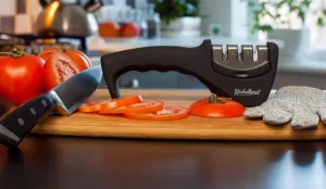 Another way to sharpen a knife is to use a sharpener, like the one below.
