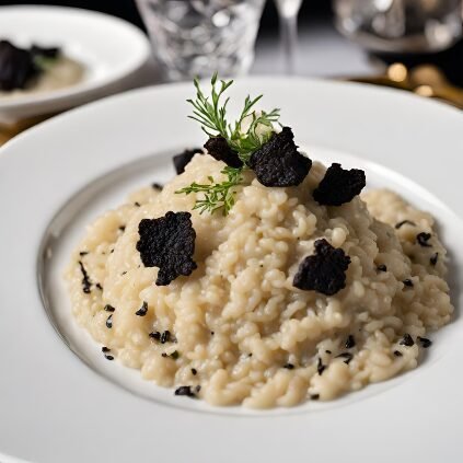 The Champagne and Black Truffle Risotto is a symphony of exquisite tastes and aromas, a dish that embodies the pinnacle of culinary luxury. Each spoonful offers a creamy, rich texture, with the Arborio rice perfectly absorbing the effervescence of the Champagne and the earthy, profound depth of the black truffles. This risotto is an ode to sophistication, where the subtle sharpness of the Champagne balances the intense, aromatic flavor of the truffles, creating a harmonious blend that is both invigorating and comforting. Garnished with freshly grated Parmesan and a drizzle of truffle oil, this dish is a celebration of indulgence, ideal for special occasions or whenever you wish to treat yourself to a dining experience that is truly out of the ordinary.