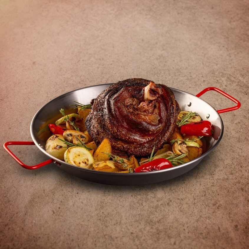 Step into the heart of German cuisine with this Crispy Pork Knuckle with Sauerkraut and Potatoes.
