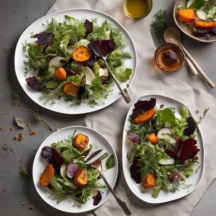 Toss the bell peppers, zucchini, and cherry tomatoes with a drizzle of olive oil, salt, and pepper. Spread them on a baking sheet and roast for about 25 minutes, or until tender and caramelized.