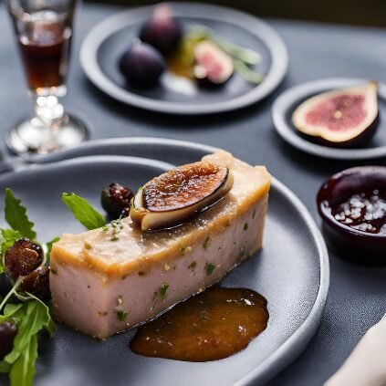The Luxurious Foie Gras Terrine with Fig Chutney is a dish that epitomizes culinary elegance and sophistication. This delicacy combines the rich, buttery flavor of foie gras with the sweet and tangy notes of homemade fig chutney, creating a harmonious blend of flavors that is both indulgent and refined. The terrine, known for its smooth and velvety texture, is meticulously prepared, ensuring a melt-in-your-mouth experience with every bite. Accompanied by the fig chutney, which adds a delightful contrast and depth to the dish, this pairing is a testament to the art of fine dining. Served as an appetizer or a luxurious addition to a charcuterie board, the Luxurious Foie Gras Terrine with Fig Chutney is guaranteed to impress, making it a perfect choice for special occasions or when you wish to treat yourself to an extraordinary culinary delight. This Luxurious Foie Gras Terrine with Fig Chutney embodies the essence of haute cuisine, offering an unparalleled taste experience that marries the rich delicacy of foie gras with the intricate flavors of fig chutney. A true celebration of culinary artistry, this dish is a must-try for those who appreciate the finer things in life.