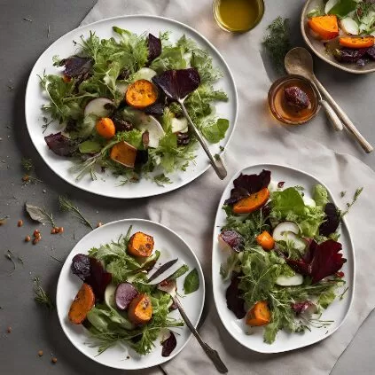 Elegant Greens Salad with Roasted Vegetables and Fine Herbs